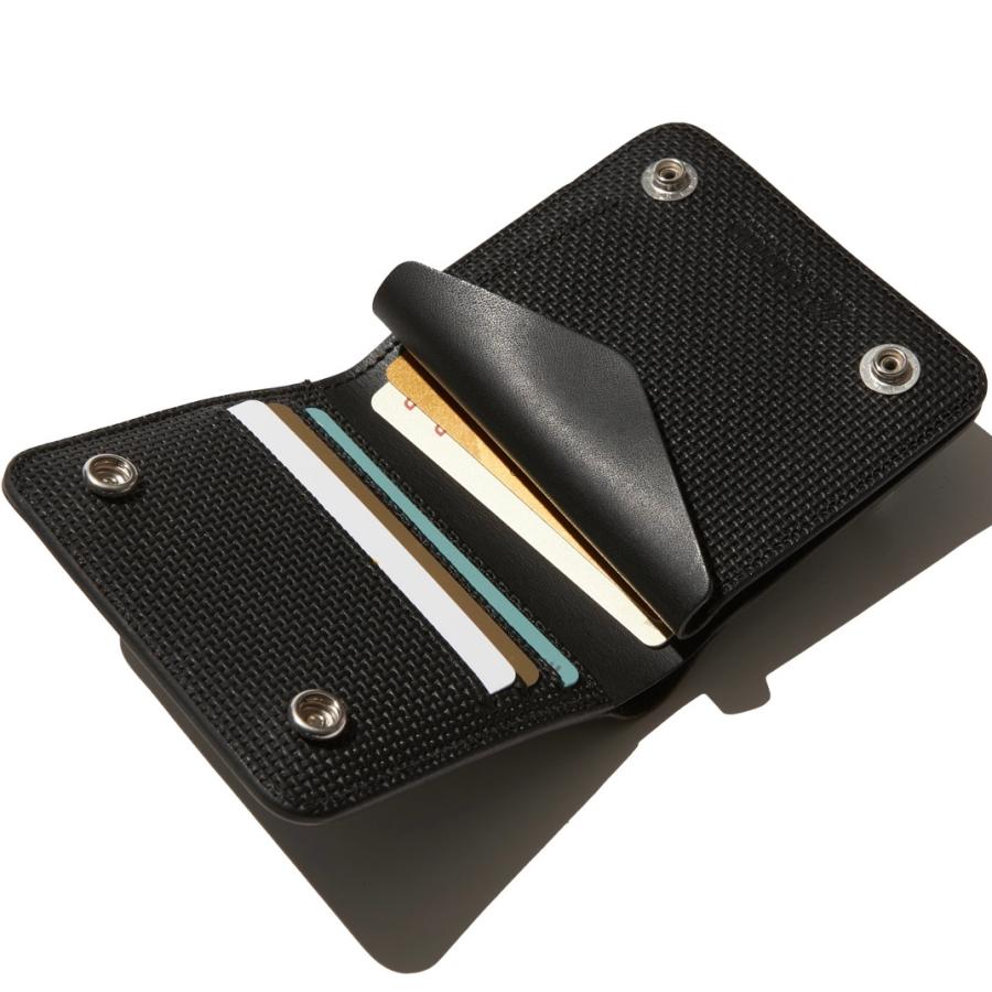 ポケットにすっぽりと収まり、コンパクトながら収納力もあるトラッカーウォレット牛革 日本製小銭入れ、札入れ、カード入7室二つ折り時の大きさ:9.5cm×10cmボックス付き