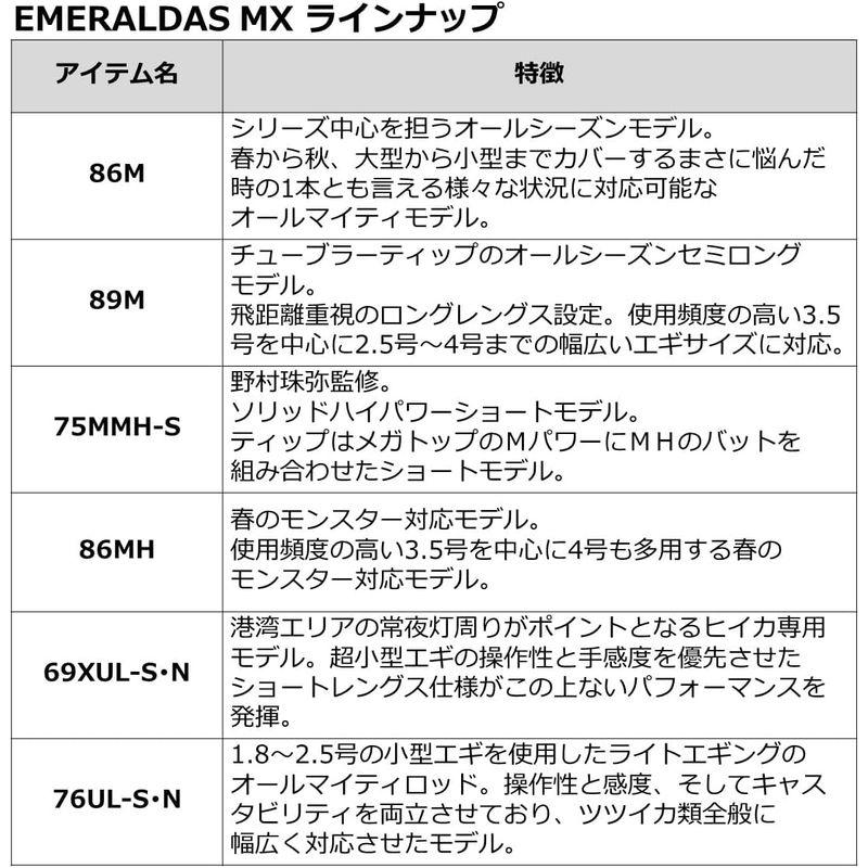 | メーカー名 | 竹中衣樹希 | ブランド名 | エギングロッド EMERALDAS MX 69XUL マジョーラ DAIWA |