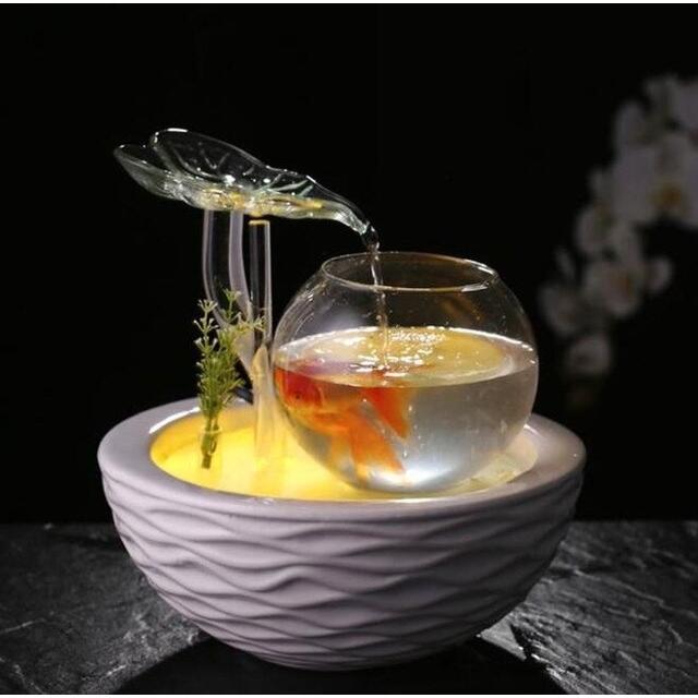 創造性テーブルトップ水噴水小さなガラス水族館水槽屋内オフィスデスクトップ装飾滝キット Lotus Fish Bowlの検索結果