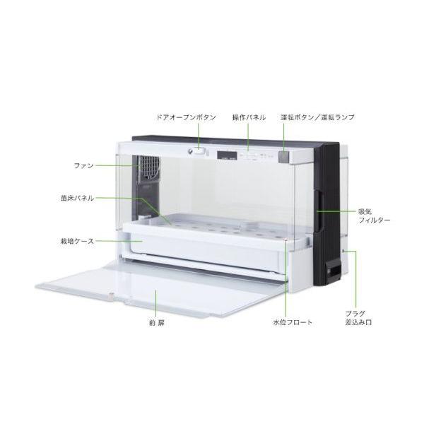 省電力LEDとオート運転で簡単・おまかせ虫などが入りにくい半密閉構造 & 90度開く前扉すっきり隠れる操作パネル本体左側に排気ファンを設置養液に酸