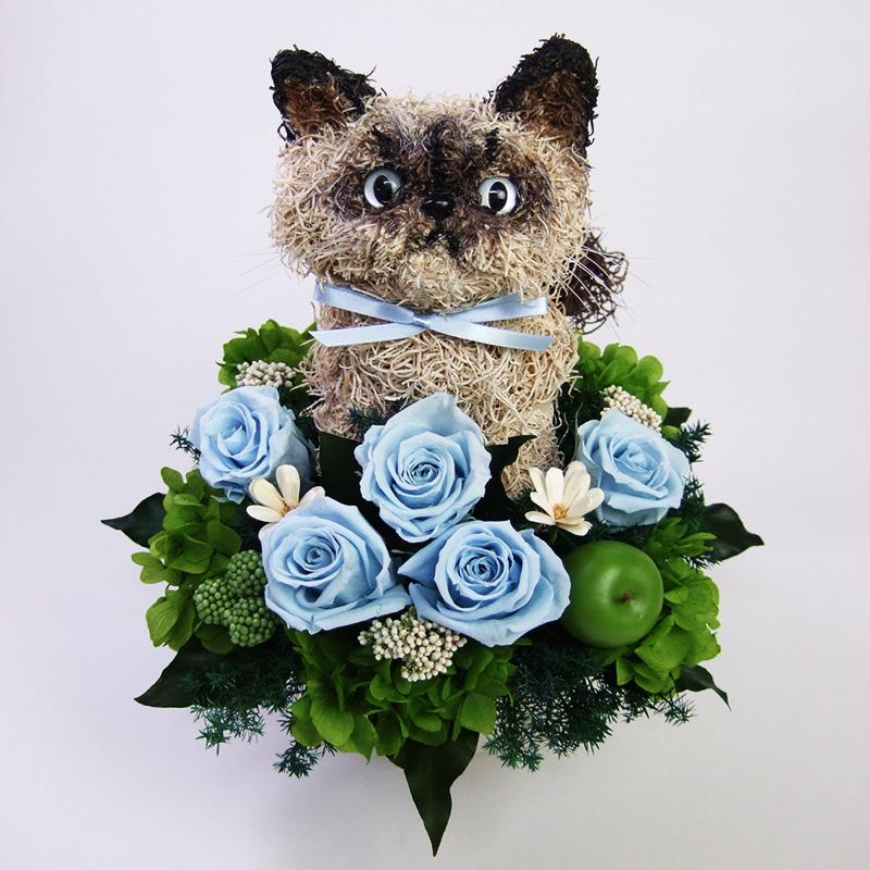 猫好きに花たまらないヒマラヤンのプリザーブドフラワーアレンジは当店のオリジナルで高級なプリザーブドモ