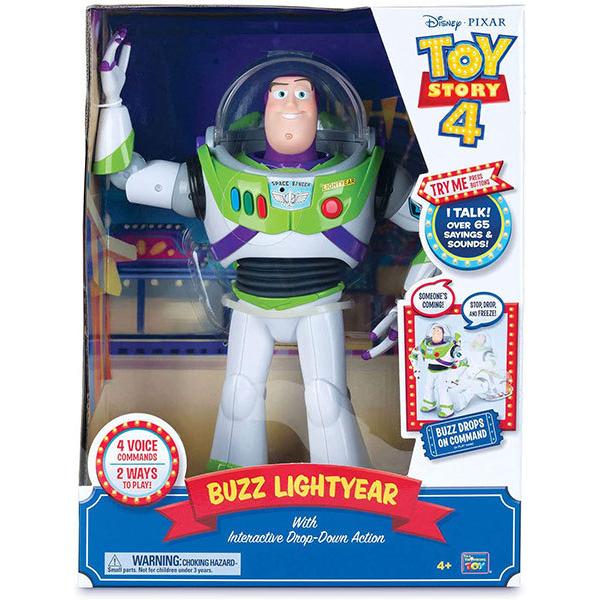トイストーリー4ドロップダウンアクション付きインタラクティブバズ・ライトイヤーです。ライブモードで話すとバズの頭が動きます。ド