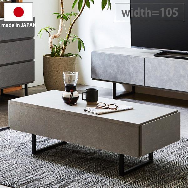 商品情報 重厚感があり、大人の雰囲気漂うセラミック素材を再現したシンプルで無機質な見た目は、様々なテイストインテリアとマッチします。 安心・信頼の日本製です。 《国産センターテーブル 幅105cm》 【サイズ】 幅105cm×奥行き45cm×高さ34.5cm 【材 質】 前板・天板:MDF/強化紙、脚:ブラックアイアン 【仕 様】 引出し:フルオープンレール 【カラー】 グレー、ブラウン 【備 考】 国産品、完成品(脚のみお客様にて取付け) 【送 料】 送料無料(北海道・東北・沖縄・離島等の一部地域を除く) 【関 連】シンプル おしゃれ 収納 収納家具 おすすめ 安い インテリア 一人暮らし モカ |