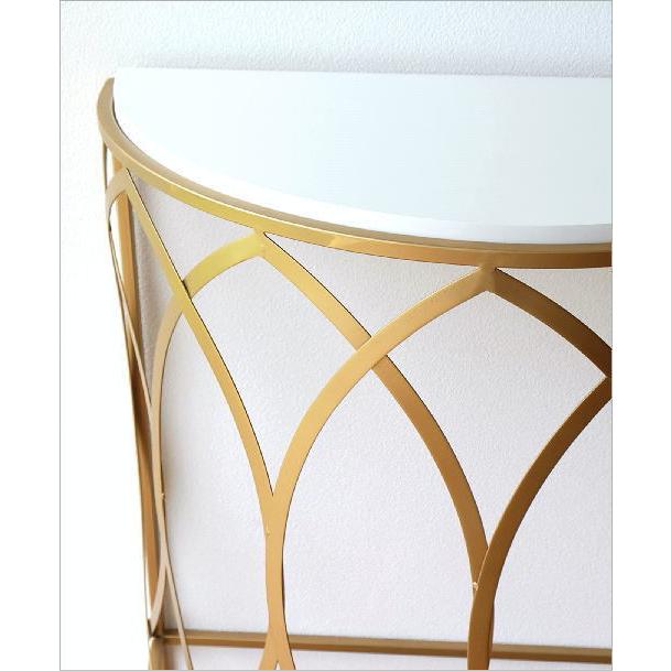 マットなアンティークゴールドのフレームにホワイトのテーブルがマッチしたラグジュアリーなコンソールテー