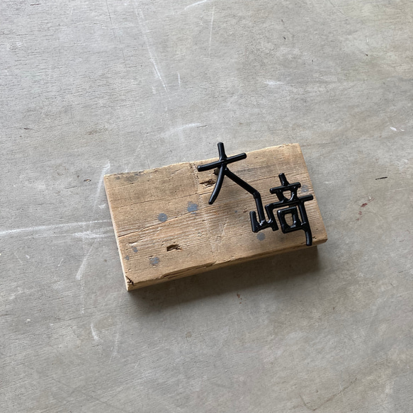 数多くの作品の中からご覧いただきありがとうございます。 ※文字数などで金額は変動します。必ずはじめにお問い合わせ下さい。納得されたうえで専用ページを設けます。 こちらの商品は、アイアンを使用した表札になります。 丸鉄にてシンプルに仕上げており、自宅、お店の表札、看板として多くの方にお使いいただいております。 文字により様々な表情がでますので既製品とは違った他と差をつけたい方にオススメです。 なお、木の台座は撮影用になります。実際にはご自宅等の壁に穴を空けていただいて裏に付いてある丸ぼうを差し込んでいただくと浮き文字のような感じになります。 木材も別途料金かかりますがご相談下さい。 サイズ 1文字約8㎝〜10㎝(正方形)の中に入るよう製作しております。 オーダーにて製作しますのでまずはお問い合わせ下さい。 ※文字数、難易度により価格は変動します。 材質 アイアン お色 錆び止加工後マットブラック塗装 ※ご注意 ※ ・溶接の際、歪みが生じ多少の誤差などございます。 ・環境や時間とともに錆が生じる場合がございます。外でご使用の場合は簡単なサビ止め加工になります。 ・すべてハンドメイドにて味のある商品づくりを心掛けております。 ご理解いただける方のご購入をお待ちしております。 ・一つ一つ丁寧にお作りしておりますが、置く場所によっては多少がたつく 場合がございます ・実店舗にて販売も行っておりますので、ご購入時に在庫がない場合もございま すがその場合、製作しましての発送となります。 ・ご希望サイズでの制作も承っております。(金額・送料等ご相談ください)
