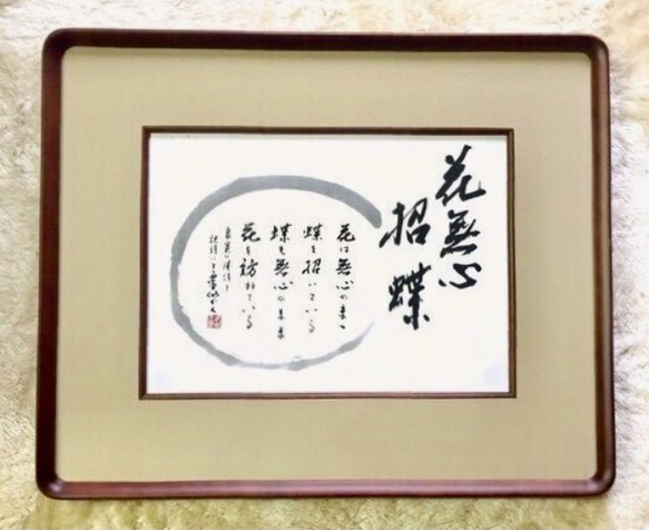 《お知らせ》 前回出品時の書道額が完売致しましたので、書道額が変更になりました。そのため金額を変更し再販させて頂いております。 お目に留めて頂きありがとうございます。 書「花無心招蝶」(花無心にして蝶を招く) 意味:良寛の漢詩を訳詩にて表現しております。 「花が無心で蝶を招いているように、蝶も無心で花を訪ねている。」 無心のめぐり合いと生命の神秘を詠っています。 めぐり合いと繋がりは、目には見えない自然の摂理。その中で人間は生かされているという壮大な意味があります。 作品サイズ:約33×24cm(半紙サイズ) 額サイズ:約50×40cm 額:木製 表面:アクリル 出品して以来、日々たくさんの方にご覧いただきまして心より感謝申し上げます。 改めて、「花無心招蝶」という言葉の持つ、人を引きつける優しい力に気づかせていただいております。 ご縁の花咲く幸福な毎日となりますように! 願いをこめて作成しております。 作品は和室にはもちろん、洋室にも素敵に馴染みます。お部屋に落ち着いた和のエッセンスを添えてみませんか? 玄関などに飾っていただいたり、大切な方への贈り物にもおすすめです。オフィスやお店のインテリアとしても是非お役立て下さいませ。 *返品・交換について お客様のご都合での返品・交換はご遠慮頂いております。 気になる点がございましたら、ご注文前にお気軽にお問い合わせ下さいませ。 梱包料込みの送料となります。 #アート #書道 #習字 #自然 #出会い #縁 #美文字 #花 #蝶 #花無心招蝶 #良寛 #漢詩 |