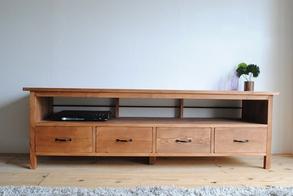 【ご注意】下記の3項目を必ず最初にお読みください。 《現在、在庫は一切なく、完全受注製作となっております。》 《現時点でのご注文で2025年(来年)の4月中のお届けとなっております。》 《発送目安日は関係ございませんのでご注意ください。》 ご覧いただきありがとうございます 既製品には無い、ハンドメイドの温もりのある家具をお届けいたします。 木目を生かしたオイルフィニッシュの無垢材に、アイアンで表情を引き締めたローボードです。 マイルドなアンティーク風加工なので、設置したお部屋に溶け込んで、雰囲気に温かみを与えます。 ワイドな上部収納部にはAV機器が複数台収納可能で、引き出し収納も4杯ございますので、 収納力バツグンな仕様となっております。 リビング・寝室・子供部屋などにいかがでしょうか? カフェなどのお店の什器としても最適です。 お部屋が一気に片付きますよ♪ また、サイズ・仕様変更オーダーをお請けしております。 どうぞ、商品のご質問欄より、お客様のご希望をお聞かせ下さい。 ご希望に沿った、世界で一つだけの家具を作製させて頂きます。 【商品寸法】 《本体》 横150.0cm x 奥行43.0cm x 高さ45.0cm 《上段収納部》 横136.5cm × 奥行き38.0cm × 高さ14.0cm 《引き出し内寸》 横30.5cm × 奥行き34.0cm × 深さ13.0cm) 《注意》 作品は注文を頂いてから製作する受注生産となっておりますので、ご購入ご検討の際は必ず《発送までの目安》をご確認くださいませ。 天然木材を使用したハンドメイド品なので精密さはありませんので、ご理解のうえ入札宜しくお願いします。 画像はサンプルです。お届けする商品とは木目、節、小キズの位置や、ペイントの剥げ具合などに多少の違いがあります事をご了承ください。 本州離島につきましては、別途送料がかかりますので、必ず購入前にご相談下さい。 その他、不明な点はご質問ください。 |