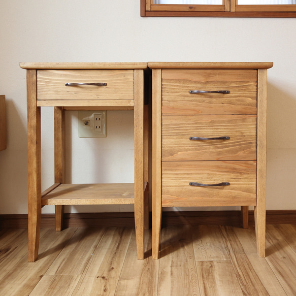 閲覧いただきありがとございます。ナイトテーブルやサイドチェストなどで利用できるハンドメイド家具です。天然木を使用している