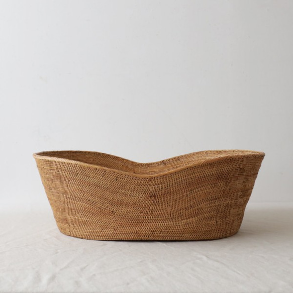 ■■■■■■ anvai original 手編む インテリア - アタで飾る。絵になる暮らし。- 「 ゆりかごみたいな 深めバスケット」 〈 Creema限定PRICE:23100円 〉 伝統工芸 アタのかご細工。 使うことで、アタの色が濃い飴色になっていき・・・ 時間を共に歩む、一生もになってくれます。 今回は暮らしに寄り添う インテリアシリーズ どんなお部屋にも馴染む ゆりかごみたいなカタチの 深めバスケット ねこちゃん、小型わんちゃんの寝床として おもちゃの収納やリネン類を入れてみたり ひとつあれば便利な 置くだけで絵になるバスケットカゴ モデルにゃんこ 体重:6.3kg ********************************** anvaiのアタ雑貨は『 ロング ライフ デザイン。』 いつまでも長く使える ”定番のもの” になるよう、 あえて、シンプルなデザインに拘って作っています。 ■■■■■■ 「 anvaiのアタ製品について 」 アタはシダ植物の一種、『アタ』の茎を使用したインドネシア バリ島の村、 TENGANANの伝統工芸品。 防虫、防菌効果をつける為に、ココナッツの実で燻す事により、 独特の香ばしい香りと美しい飴色に仕上がります。 水に強く、軽くて劣化が少ない為、末永く愛用することが出来きる鞄です。 ※anvaiのアタ製品は、昔ながらの職人さんに頼んで、 手間と時間をかけ、一本一本、丁寧に編み込んでもらっています。 ■■■■■■ ●その他アタのインテリアアイテムはコチラになります↓● ●かごバッグ鞄はコチラになります↓● ■■■■■■ ◎サイズ ※全て平置きで計測※ 上:約50cm×約39cm 高さ:約18cm 底:約40cm×約30cm (手編みの為、多少の誤差がある場合がございます。) ◎素 材:アタ ◎カ ラ ー :ナチュラル ◎備考:アタ製品の特性上、色ムラなどがある場合がございます。 手編みのためサイズに多少の誤差があります。 |