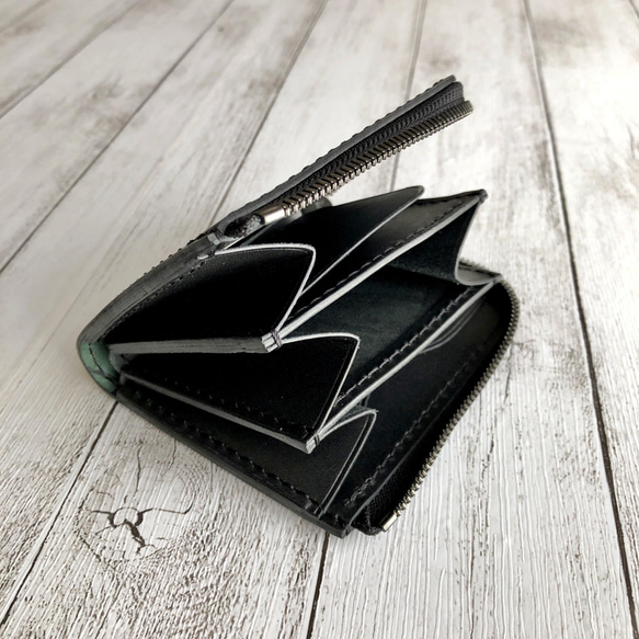 こちらは受注製作となります。お支払い完了後の製作となります。 *製作期間はプロフィールに記載しております。 別で出品中のオプションで小銭入れ横にレシートやカードを入れられるパーツを追加できるようになりました。併せてご検討お願い致します。 内装画像は小銭入れ横ポケットを付けた物になります。 オプション購入なしの場合は小銭入れ横ポケットは付きませんのでご注意願います。 【小銭入れサイドポケット追加オプション 】 外装:艶が美しく年々希少価値が上がっているコードバンの中でも、さらに入手困難なホーウィン社のシェルコードバンを使用しております。 入荷時からの薄い線キズ. 色ムラ. 毛穴など、アメリカンクオリティですが、ワイルドな天然皮革感とコードバンの艶がそれを打ち消してくれます。 内装:サドルレザー 片側マチ無しにする事でお札を折らずに入れる事を可能にしました。 他には無いタイプのお札の入れ方、出し方で 二つ折りにして入れる 出して広げるという煩わしさが無く、小銭入れも両側マチ付きで取り出しやすく 会計時に[ワンアクション]でスムーズにお支払いできるミニウォレットです。 最後の画像の様に小銭入れ部のマチを押すなどして 小銭入れを持ち上げた状態にするとお札を入れやすいと思います。入れるのは慣れてしまえば簡単です。 お札は二つ折りの場合は縦でも横でも入ります。 お釣りを受け取り、上記の入れ方ですぐに入れ難い場合にはとりあえず二つ折りで素早く入れておけばスムーズにレジから撤収できます。 お札を出す時は引っ張ればスルっと出ます。 もちろん逆さまにして振っても小銭がカード入れ側に出てしまう事はありません。 これだけで財布としての機能は充分ありますので小さなバッグで出かける時にも重宝します。 ファスナーはYKKエクセラを使用しており、務歯全てに磨きがかけられている 非常に綺麗なファスナーで使い込む程滑らかになっていきます。 金具はゴールド (ゴールデンブラス) シルバー(ニッケル) 布地は黒 焦茶 ベージュ、から選択できます。 (ファスナーその他カラーをご希望の場合は別で出品中の【ファスナー布地. 金具取り寄せカラーサンプル】の方を一緒に購入して下さい) 【ファスナー布地. 金具取り寄せオーダー用ページ】 素材 外装 Horween shell cordvan 内装 サドルレザー カード入れ3段×2 サイズ 約11×9.5×2.5 (cm)
