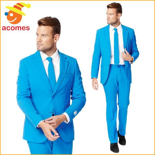 美しいスカイブルーの大人男性用スーツです。ジャケット、タイ、ズボンのセットです。派手で目立つこと間違いなし!パーティーや出