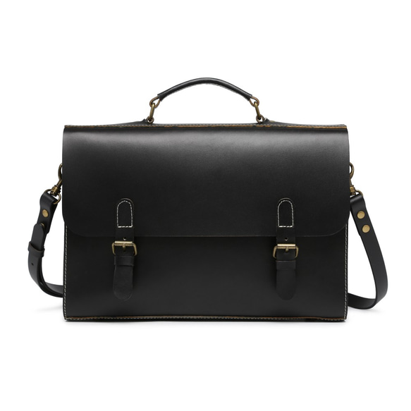 サッチェルバッグ ブリーフケース ビジネスバッグ 本革 ヌメ革 斜めがけ A4 通勤 通学 ブラック 123