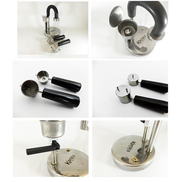 商品情報 ・サイズ:W14×D14×H21cm ウォータータンク容量 ・1カップ用(半分):30ml ・2カップ用(満水):60ml ポルタフィルターに入る粉の量 ・1カップ用:7グラム ・2カップ用:12グラム ・重さ:約1kg ・素材: ステンレススチール パッキン:シリコン ・製造国:イタリア ・付属品: 1カップポルタフィルター 2カップポルタフィルター 【ご注意】 ※kamiraは圧力器具です。お子様によるご使用はしないでください。 ※詳しくは同梱の取扱説明書をご参照ください。 ※カミラは職人による手作業のため「個体差」があります。 |
