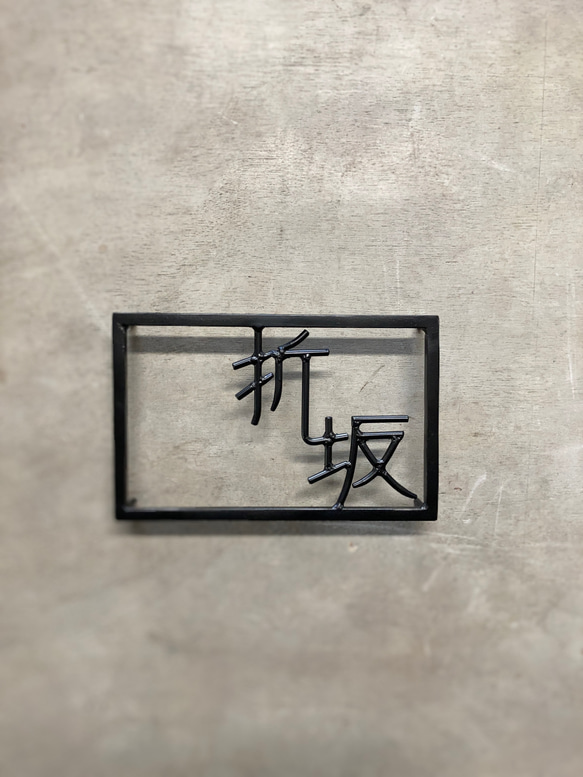 数多くの作品の中からご覧いただきありがとうございます。 ※文字数などで金額は変動します。必ずはじめにお問い合わせ下さい。納得されたうえで専用ページを設けます。 こちらの商品は、アイアンを使用した表札になります。 丸鉄にてシンプルに仕上げており、自宅、お店の表札、看板として多くの方にお使いいただいております。 文字により様々な表情がでますので既製品とは違った他と差をつけたい方にオススメです。 なお、木の台座は撮影用になります。実際にはご自宅等の壁に穴を空けていただいて裏に付いてある丸ぼうを差し込んでいただくと浮き文字のような感じになります。 木材も別途料金かかりますがご相談下さい。 サイズ 1文字約8㎝〜10㎝(正方形)の中に入るよう製作しております。 オーダーにて製作しますのでまずはお問い合わせ下さい。 ※文字数、難易度により価格は変動します。 材質 アイアン お色 錆び止加工後マットブラック塗装 ※ご注意 ※ ・溶接の際、歪みが生じ多少の誤差などございます。 ・環境や時間とともに錆が生じる場合がございます。外でご使用の場合は簡単なサビ止め加工になります。 ・すべてハンドメイドにて味のある商品づくりを心掛けております。 ご理解いただける方のご購入をお待ちしております。 ・一つ一つ丁寧にお作りしておりますが、置く場所によっては多少がたつく 場合がございます ・実店舗にて販売も行っておりますので、ご購入時に在庫がない場合もございま すがその場合、製作しましての発送となります。 ・ご希望サイズでの制作も承っております。(金額・送料等ご相談ください)